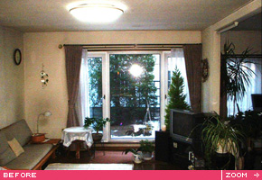細長い間取りと採光条件の悪さを、あまり大がかりな工事をせずに解消したいというご要望をいただきました。ベランダの窓開口を天井までにし、外の景色を取り込むなど、あらゆる工夫をこらしています。